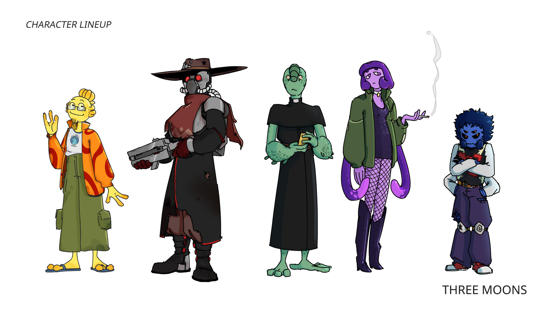 MKV is a war veteran who acts like a self-proclaimed sheriff. She tries to keep peace in this blue, stormy planet to cope with her complex past. No one has ever seen her below her armor, and takes advantage of that, as humans don't have the best reputation after ruling the galaxy with an iron fist.