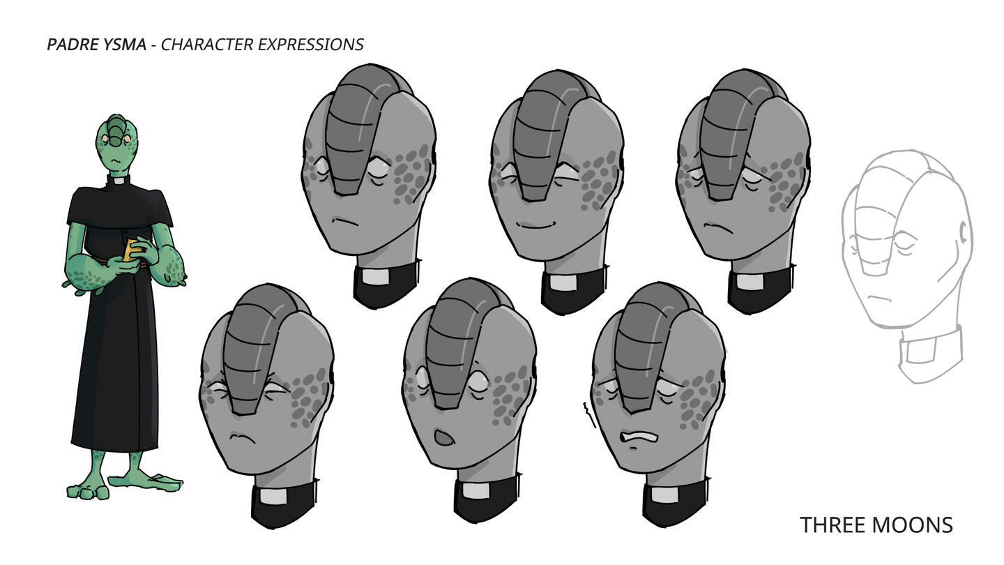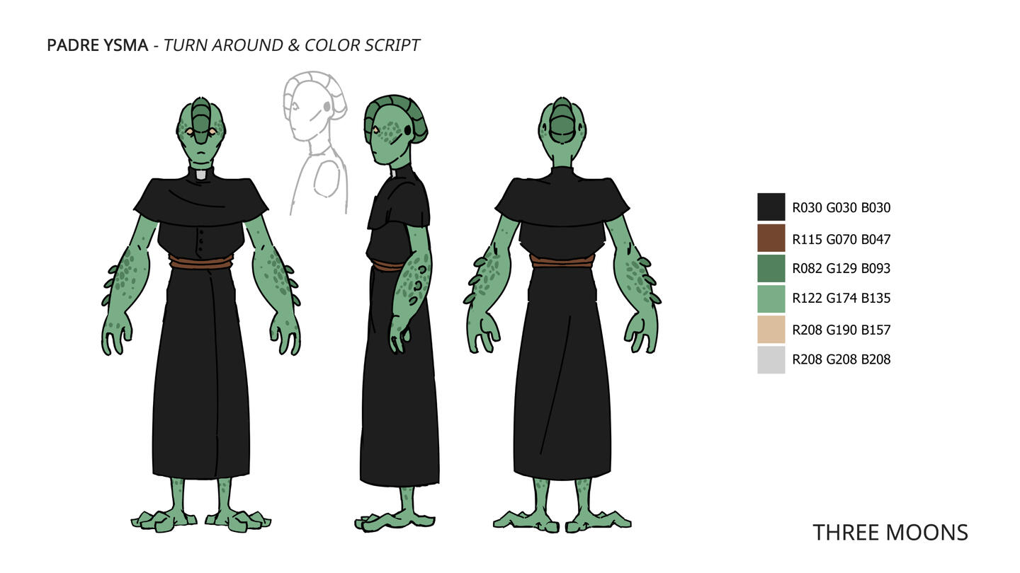 The inhabitants of RCF-1089 are the main characters of a tragic situation: Someone has been killed in their small town and no one knows who's the culprit.Father Ysma is the local priest. The xamorian usually listens and comforts the locals, and now that this mystery has unraveled he might have a clue on what truly happpened.Qik is an apollinean activist that lives to protect the ix'iks, an endangered species.MKV is a war veteran who acts like a self-proclaimed sheriff. She tries to keep peace in this blue, stormy planet to cope with her complex past. No one has ever seen her below her armor, and takes advantage of that, as humans don't have the best reputation after ruling the galaxy with an iron fist.